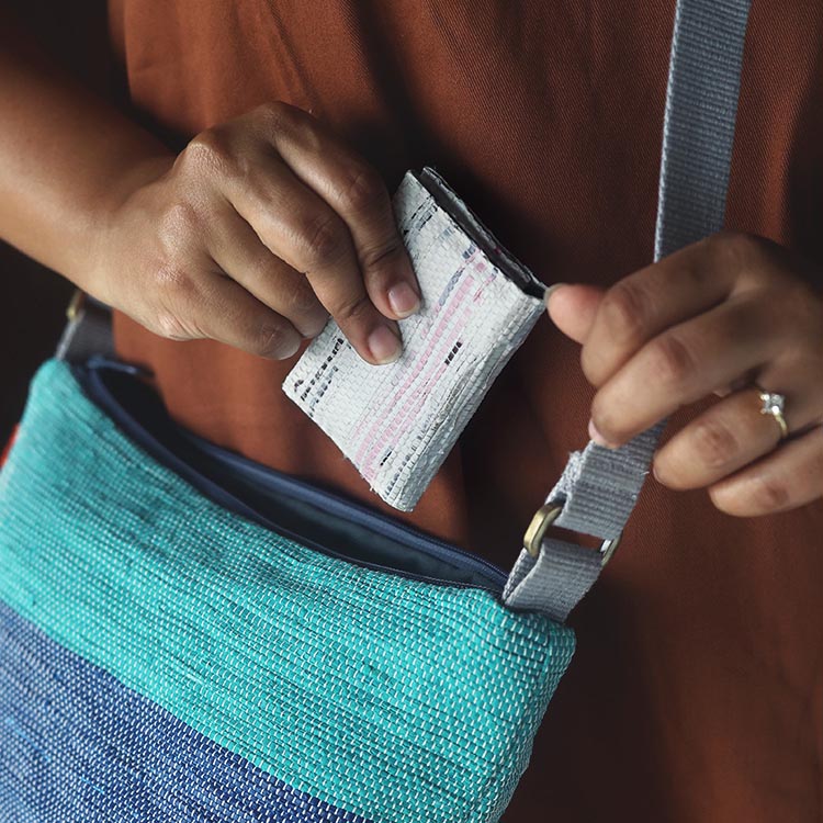 Thélaが最も力を入れているのは、埋め立て地や海からプラスチックを回収することです。私たちのシグネチャーである手織りのプラスチック素材が、まさに循環型であることは驚くことではありません。しかし、私たちはそれだけにとどまらず、すべての副資材も同様に持続可能です。