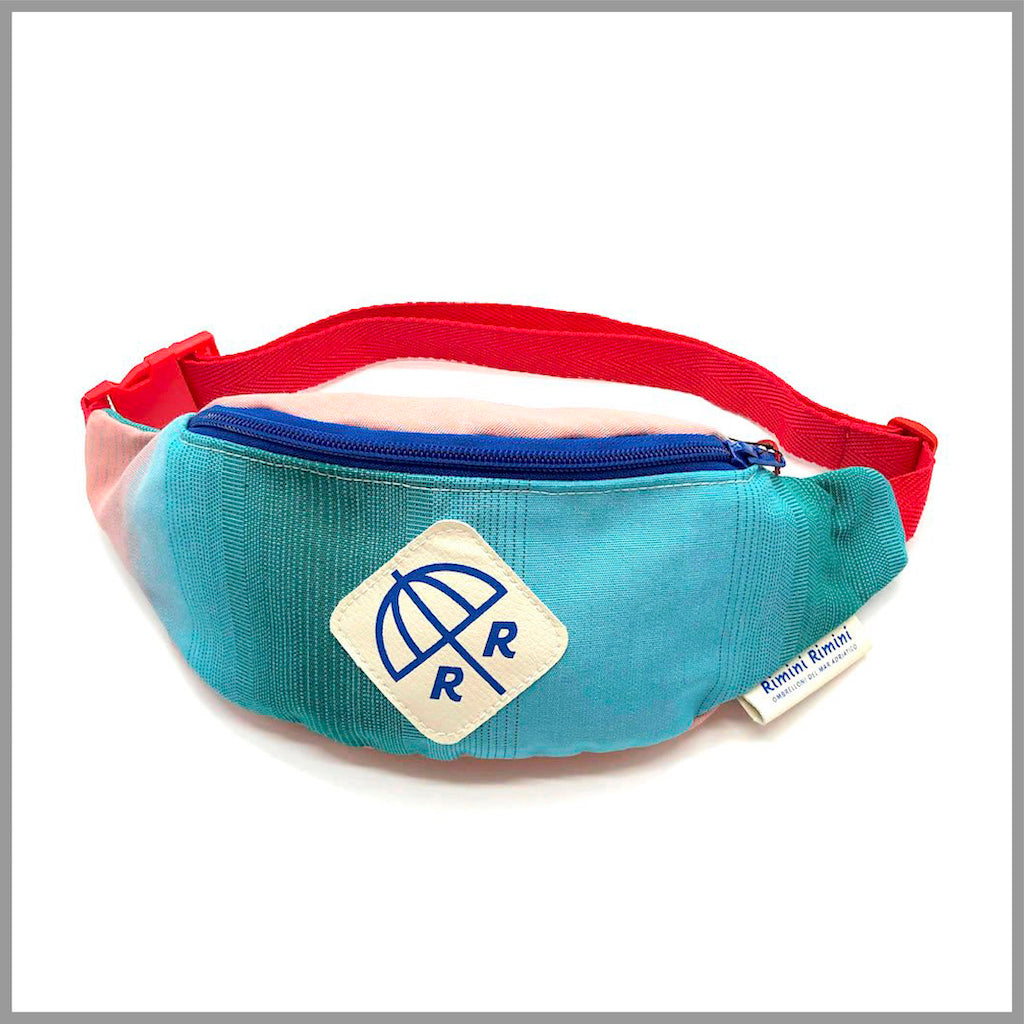 Fanny pack made by upcycling beach umbrella fabrics from the Adriatic coast, Italy. Can be used as a cross body bag as well.