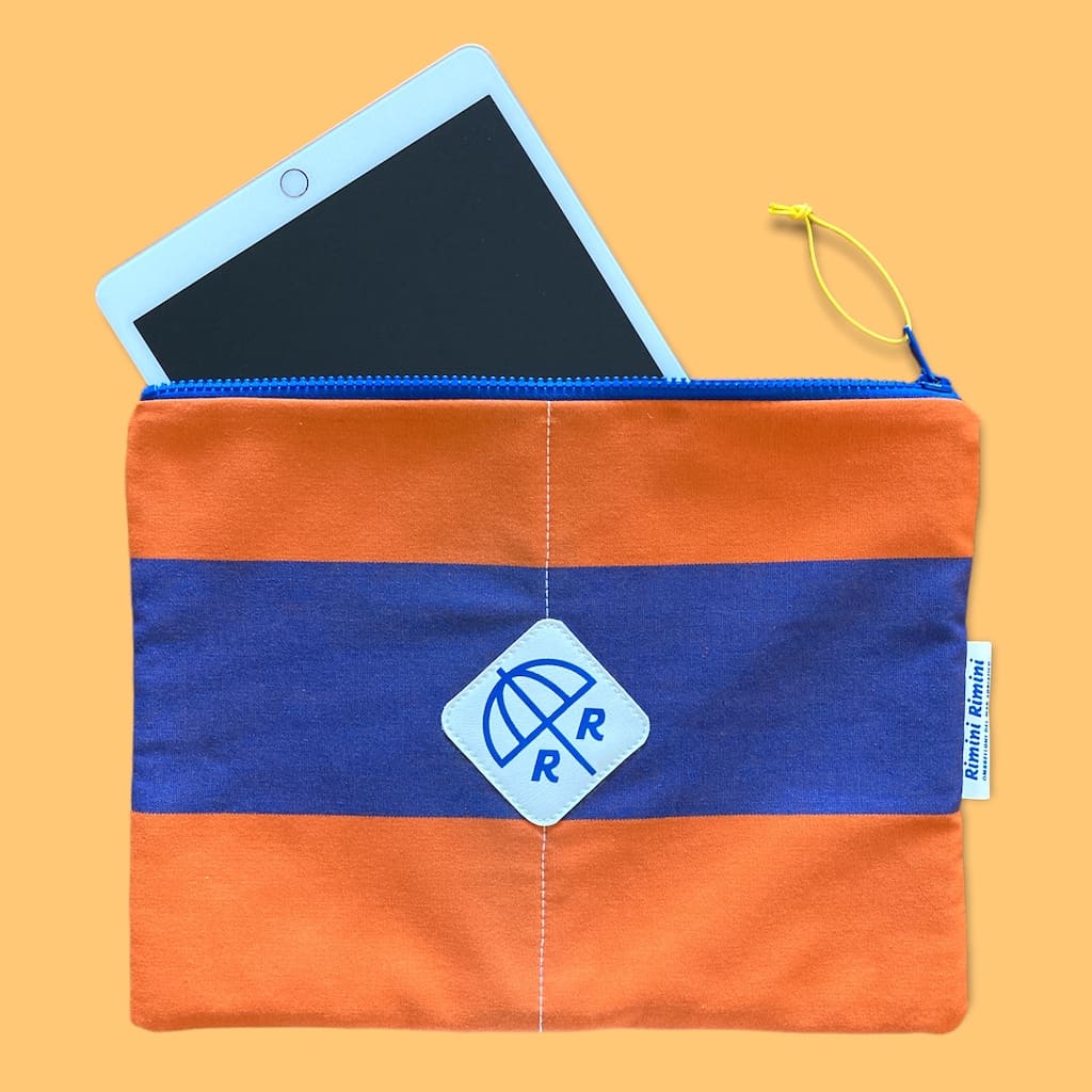Padded iPad case made by upcycling beach umbrella fabrics from the Adriatic coast, Italy.
