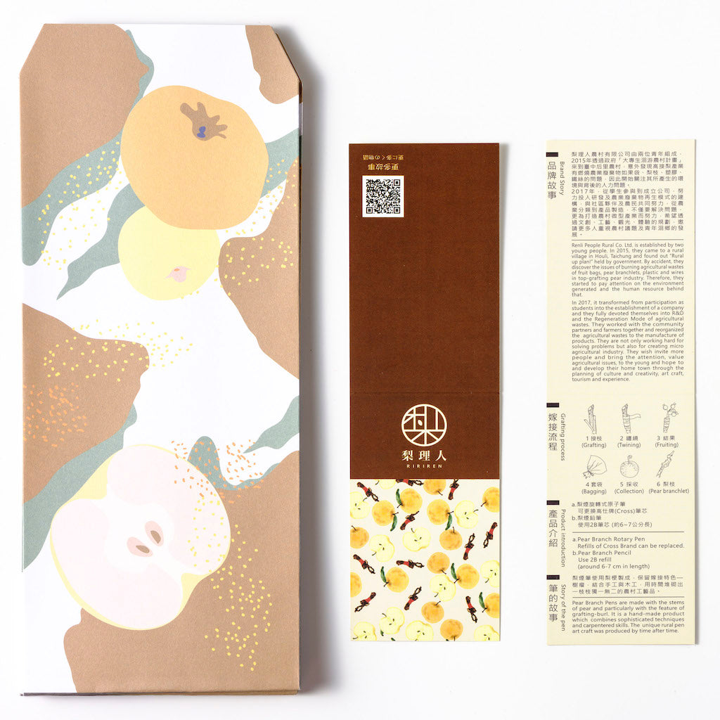 There they discover the issues of burning agricultural wastes of fruit bags, pear branchlets, plastic and wires in top-grafting pear industry. Ririren decided to start paying attention on the environment generated and the human resource behind it. Slowly they transformed from participation as students into the establishment of a company and are now fully devoted into R&D and the Regeneration Mode of agricultural wastes. They work with the community partners and farmers together and reorganized the agricultural wastes to the manufacture of products. They are not only working hard for solving problems but also for creating micro agricultural industry. They wish to get more people involved and bring attention to the young and hope to and develop their home town through the planning of culture and creativity, art craft, tourism and experience. Their current primary service include the product development and sale of fruit trees, experiential environmental education tours, and hand-made activities and related topics.