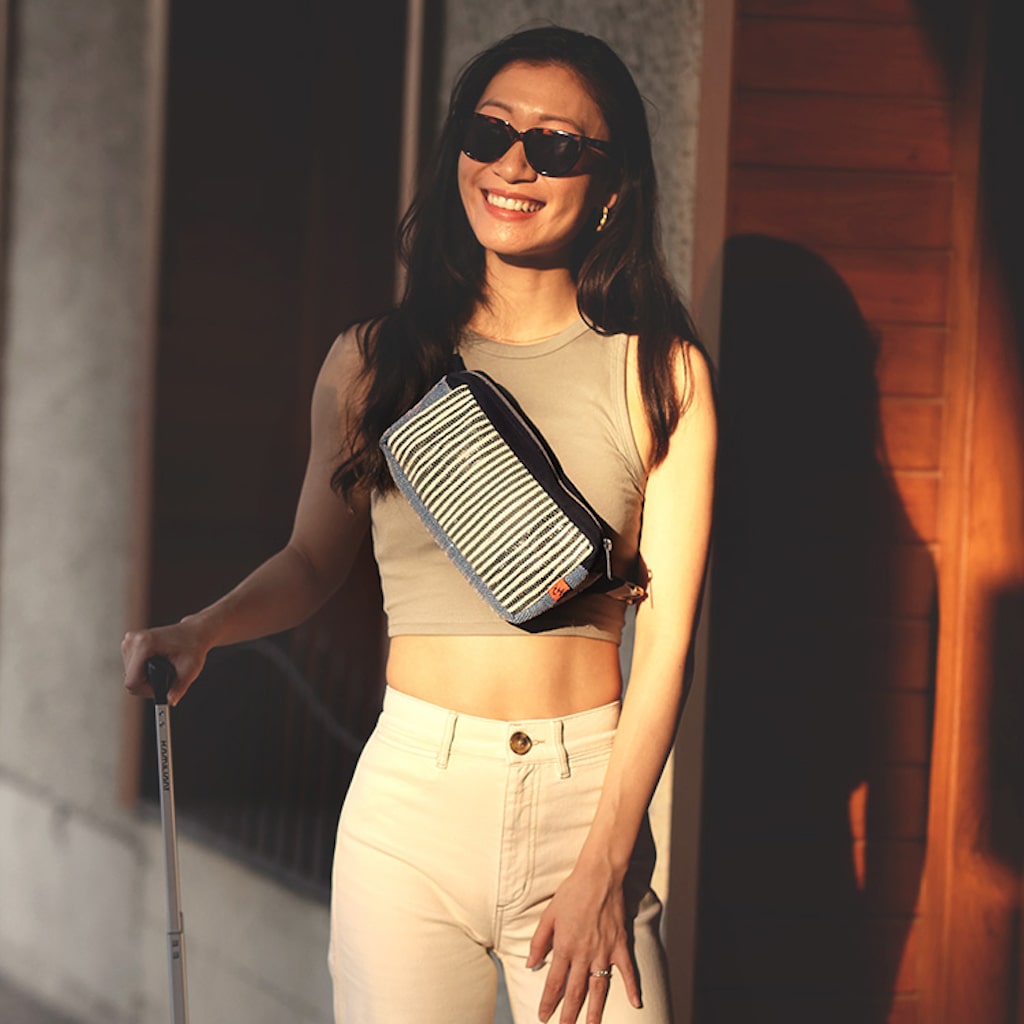 [FEATURES] – Trendy and spacious belt bag with an adjustable organic cotton strap – Roomy enough for your phone, passport, and even a small water bottle – Can be worn across the body or around the waist –Inner zippered pocket for storing small items