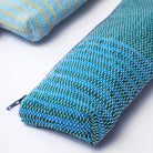 - ビニール袋は洗浄、乾燥してからハサミで裁断し再生PETの糸と一緒に機織され生地へと成形