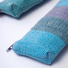 - ビニール袋は洗浄、乾燥してからハサミで裁断し再生PETの糸と一緒に機織され生地へと成形