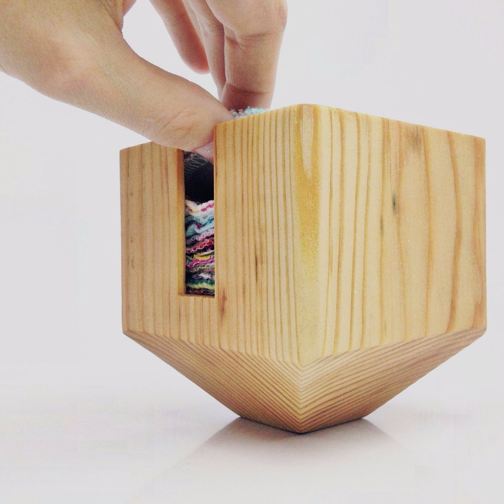 別売りのフェイシャルラウンド(コットンパフ)を保存するた木製コンテナー。