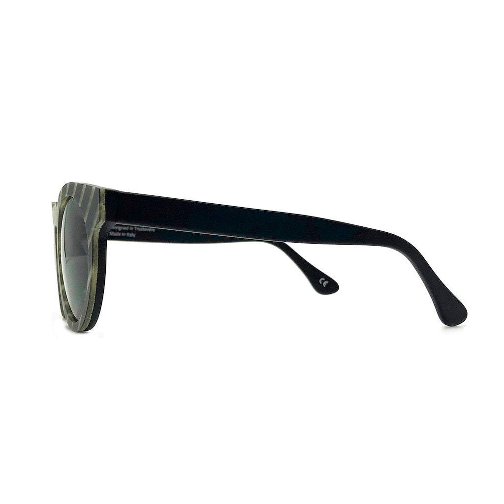 初めてこのサングラスと出会った時、すぐにでも自分の目で確かめたいと思い、サンプルでオーダーをしました。使われる箇所によってはソリッドカラーであったり、個性的な柄になったりと、同じものが何一つ存在しないのは、大きな魅力です。また、型はこれ以外にいくつかありますのが、今回はアジアンフィットを重視し、このモデルのみをオーダーしました。すべての工程をイタリアで行なっており、まさしく、その地の環境によって生まれた素晴らしいアイデアだと言えます。